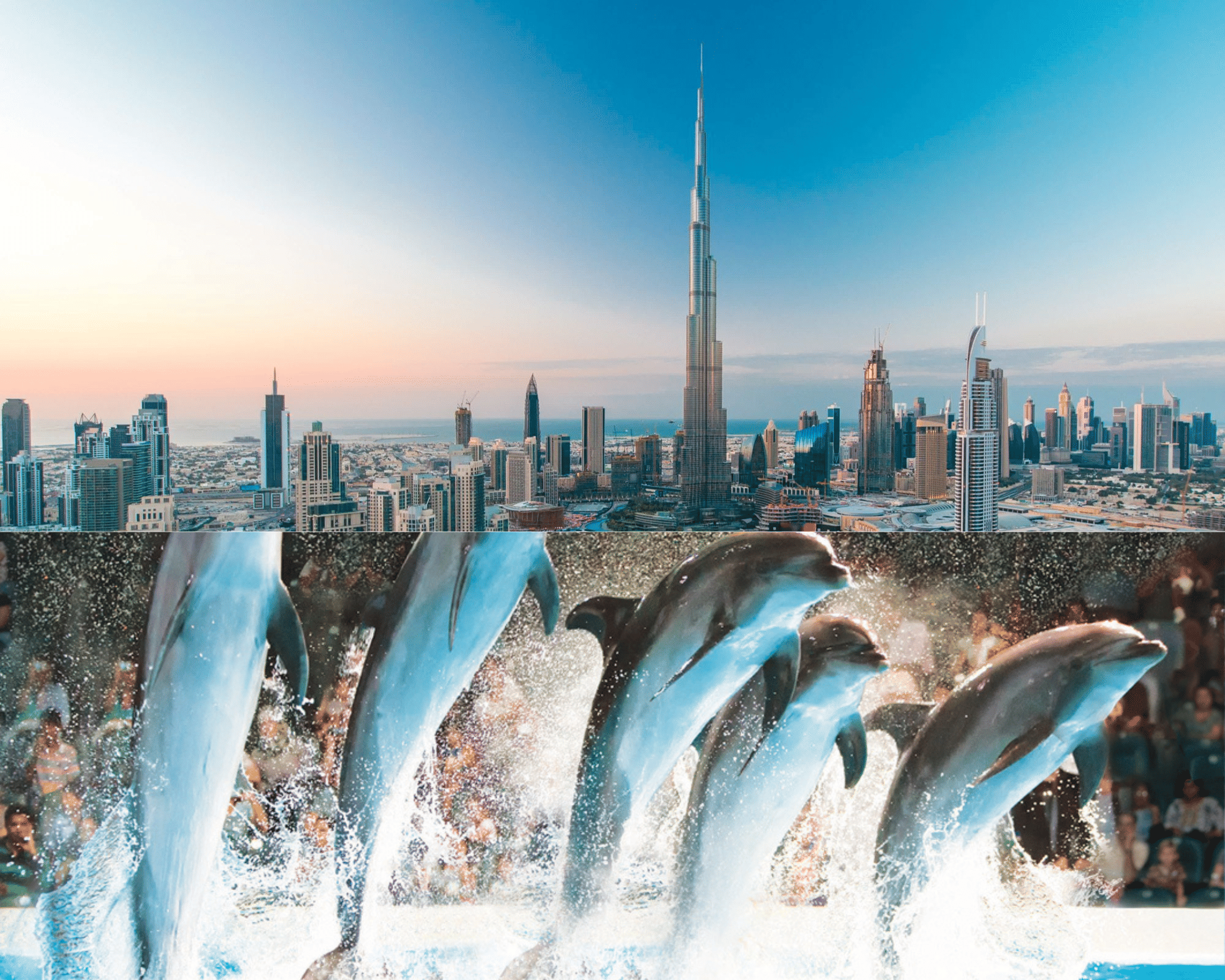 Look at Dubai from Worlds Tallest Observatory and relax with the Doplhins at Dubai Dolphinarium