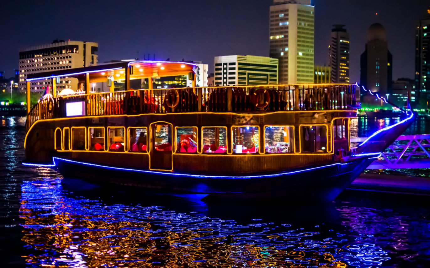 Absorb Dubai Marina’s unrivaled architecture, opulent yachts, and breathtaking waterfront sights at its best! Go on an atmospheric dhow cruise Marina which is a sum up of magical sightseeing, delectable dining, and striking entertainment.