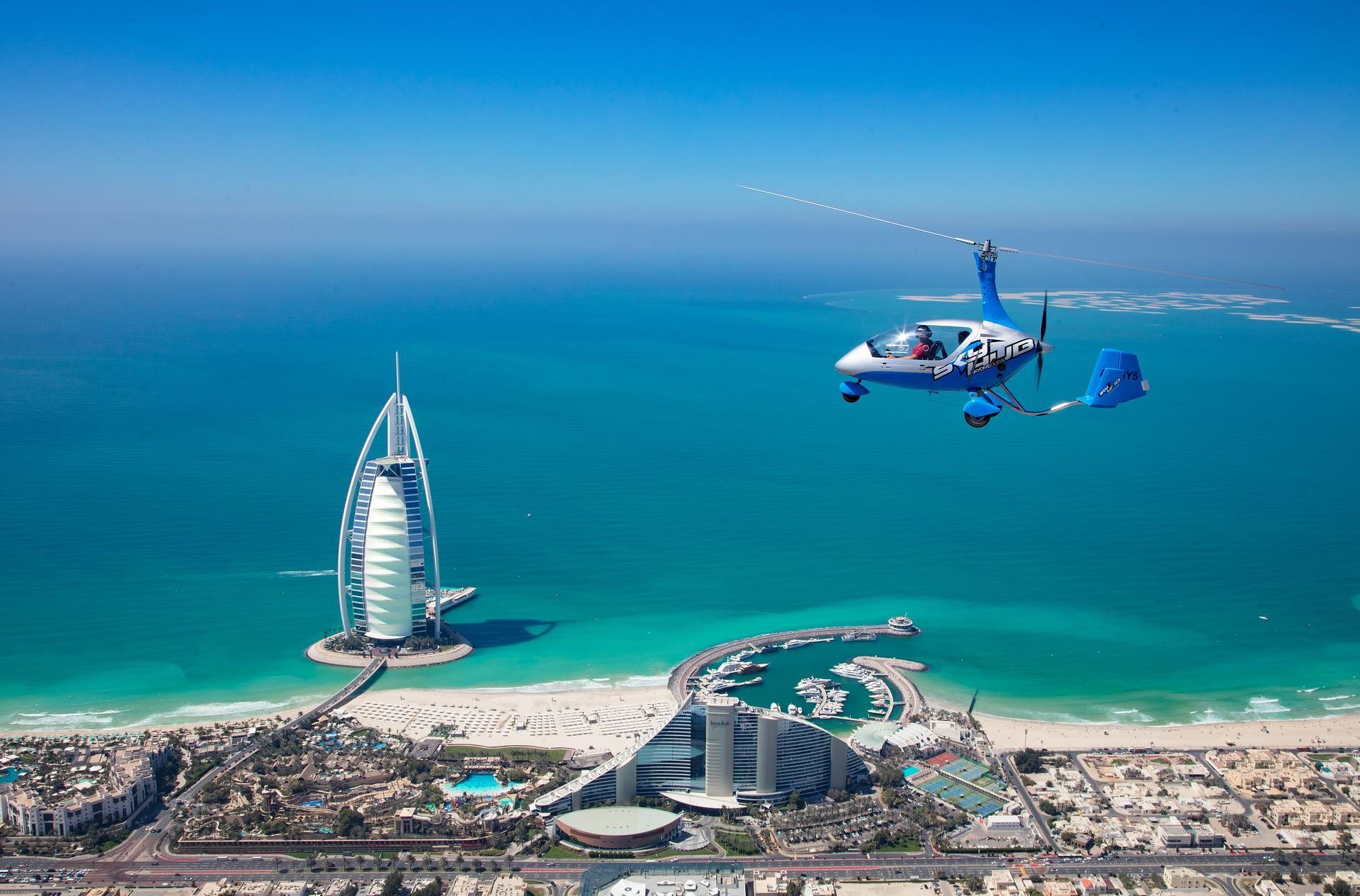 A 20 min thrilling and once in a lifetime experience onboard the Gyrocopter. Fly over the infamous Palm Jumeirah & Burj Al Arab.