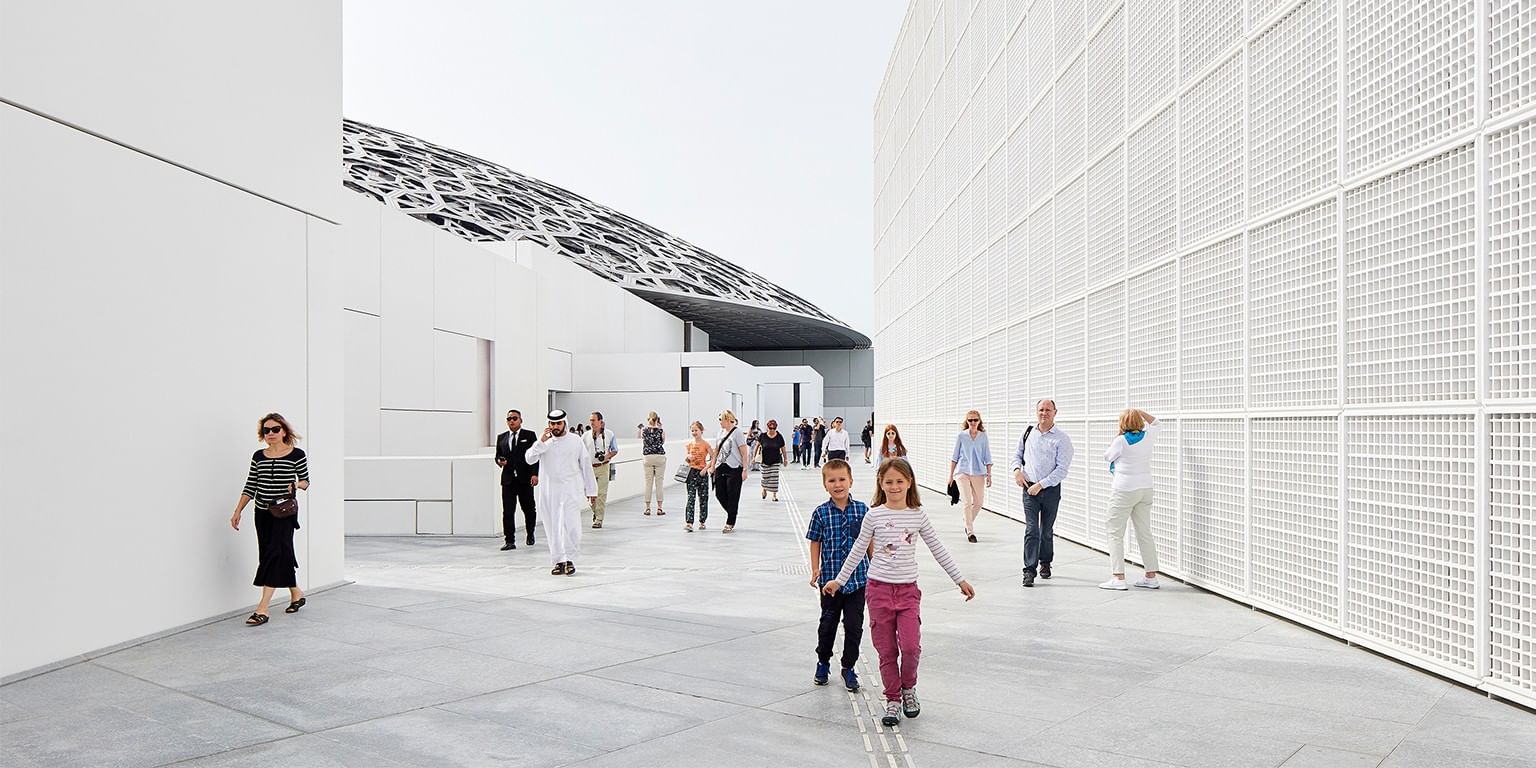 Soak in generous views of the sea and Abu Dhabi's skyline on your way to the mesmerizing dome.